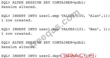 * USER1.EMP is a table in PDB1 and USER2.DEPT is a table in PDB2.