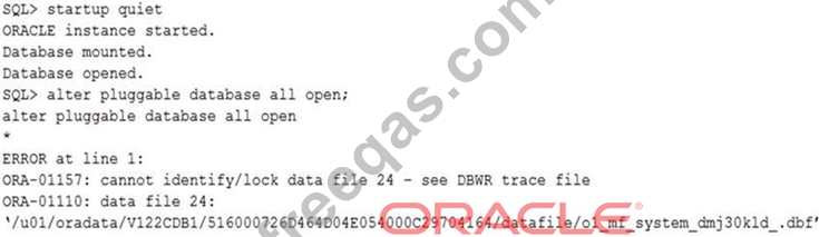 After a system crash, an instance restart and an attempted opening of the PDBs result in:
