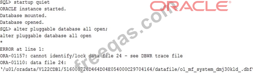 After a system crash, an instance restart and an attempted opening of the PDBs result in: