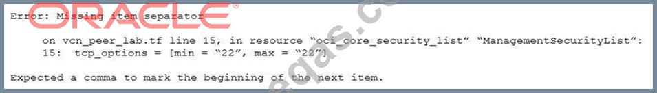 You have recently been asked to take over management of your company's infrastructure provisioning efforts, utilizing Terraform v0.12 to provision and manage infrastructure resources in Oracle Cloud Infrastructure (OCI). For the past few days the development environments have been failing to provision. Terraform returns the following error: