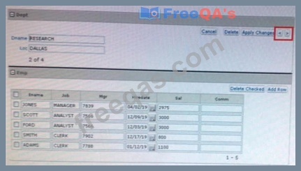 View the Exhibit. A Master-Detail page was created. Which option would a developer choose in the Master-Detail wizard to scroll through records in the Master table?