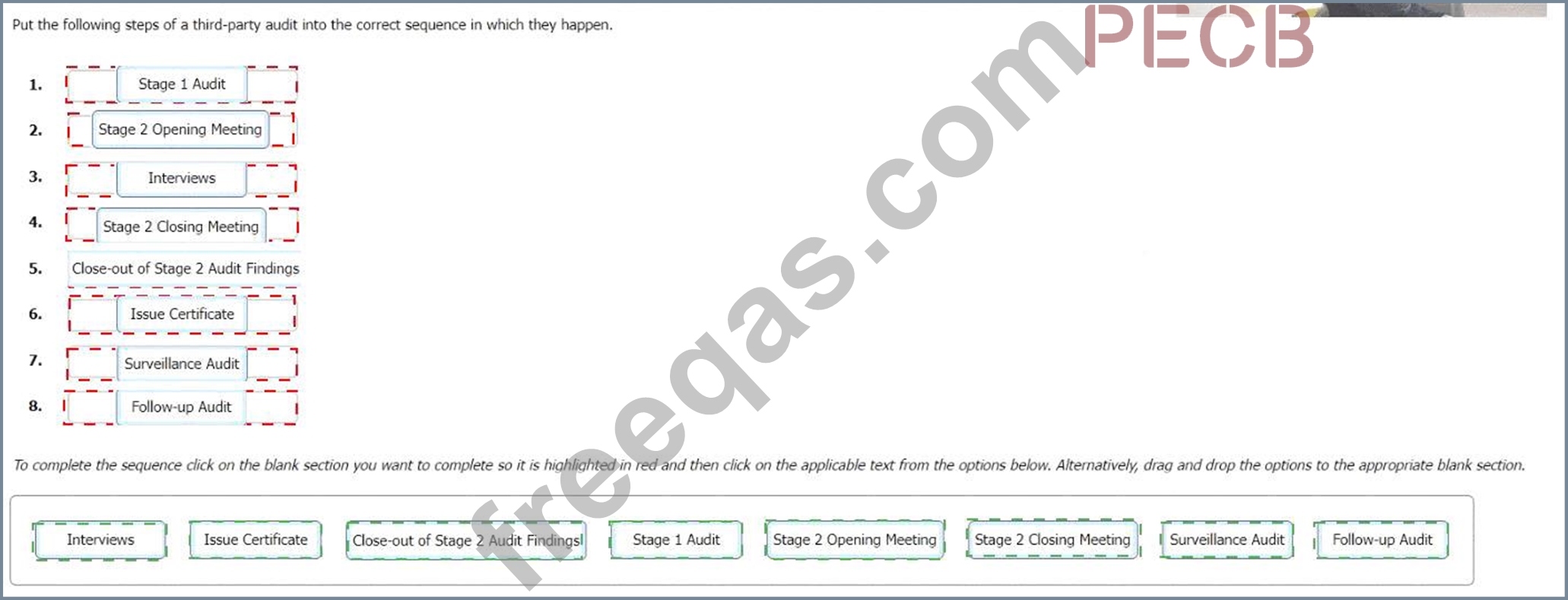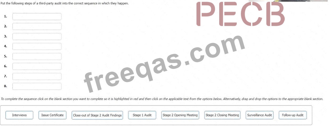 To complete the sequence, click on the blank section you want to complete so it is highlighted in red and then click on the applicable text from the options below. Alternatively, drag and drop the options to the appropriate blank section.