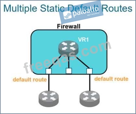 Which two statements are correct regarding multiple static default routes when they are configured as shown in the image? (Choose two.)