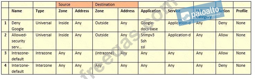 Given the image, which two options are true about the Security policy rules. (Choose two.)