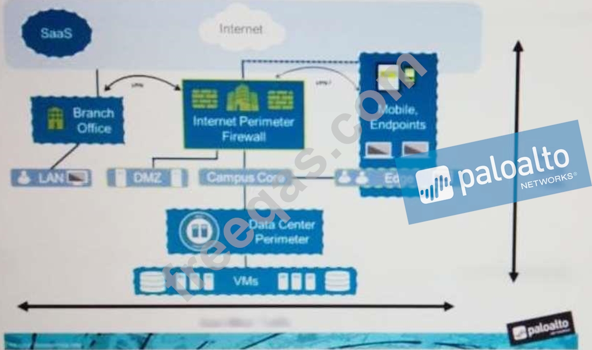 An administrator notices that protection is needed for traffic within the network due to malicious lateral movement activity. Based on the image shown, which traffic would the administrator need to monitor and block to mitigate the malicious activity?