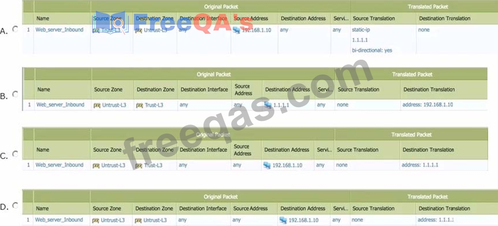 A company hosts a publicly-accessible web server behind their Palo Alto Networks firewall, with