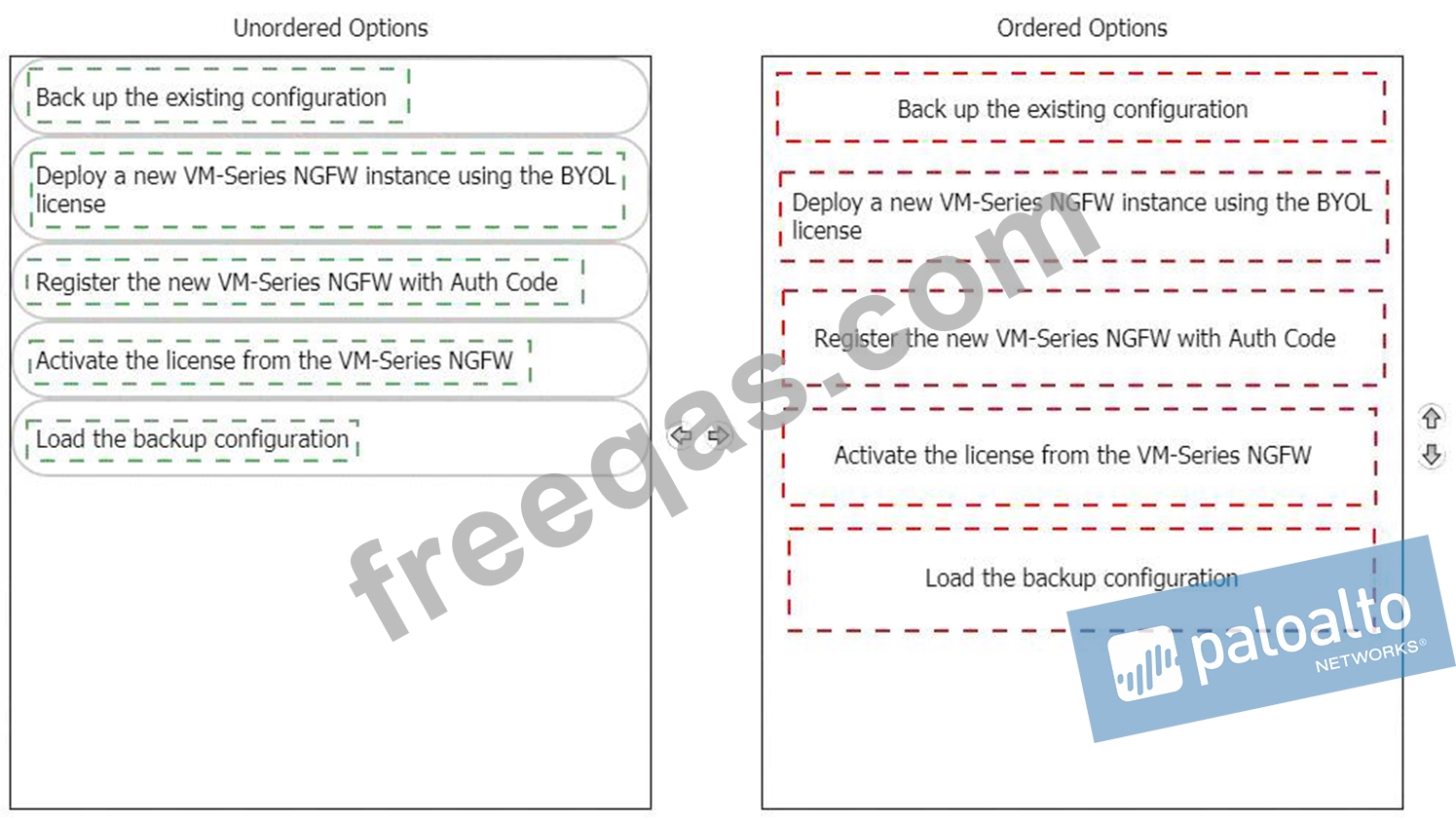 A customer has deployed a VM-Series NGFW on Amazon Web Services using a PAYG license. What is the sequence required by the customer to switch to a BYOL license?