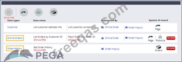 In this same application, you now want to drill down into the Data Designer for the Online Orders and Order History data types. Click Online Orders and Order History to enter the Data Designer. View the information in the Data Designer before you proceed.