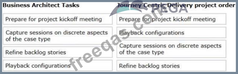 Select and move the Business Architect tasks to the Journey Centric Delivery project order column and place them in the correct order.