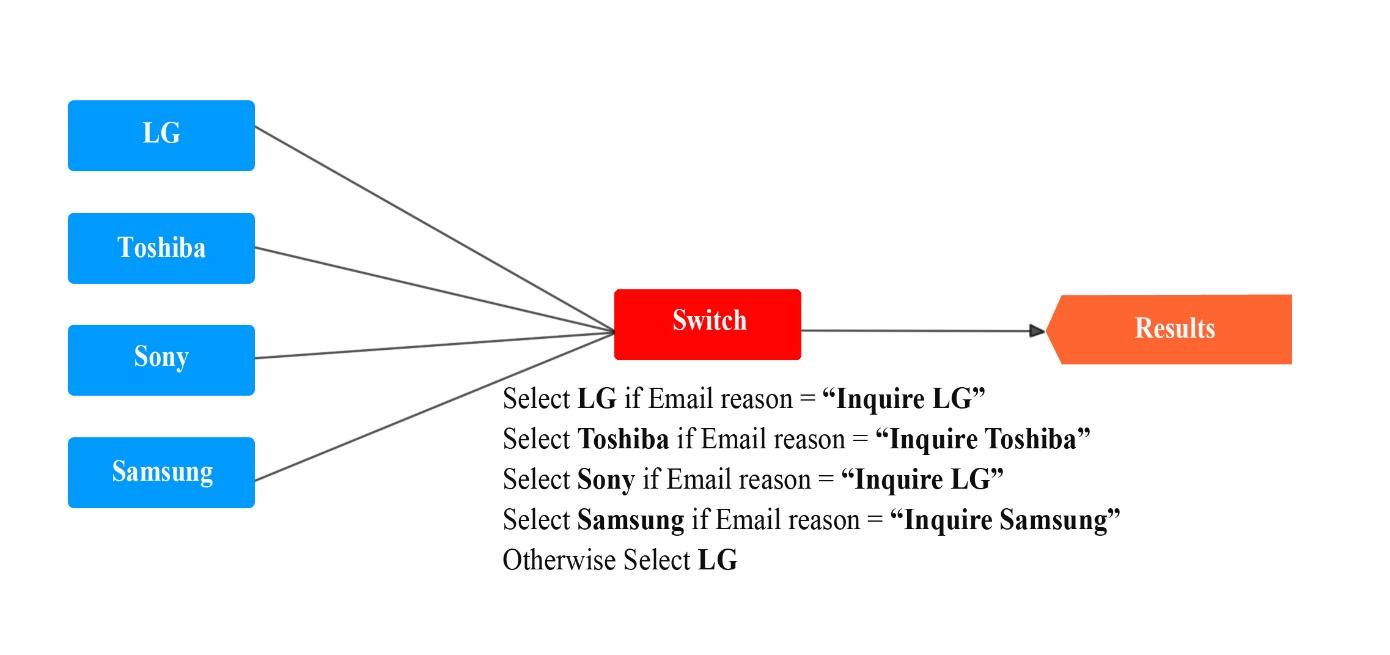 If the Email reason is Inquire LG, what does the Results of the strategy contain?