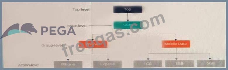 The company wants to present more relevant offers to customers based on customer behavior. The following diagram is the action hierarchy in the Next-Best-Action Designer.