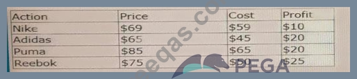 The following decision strategy outputs the most profitable shoe a retailer can sell. The profit is the selling Price of the shoe, minus the Cost to acquire the shoe.