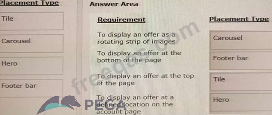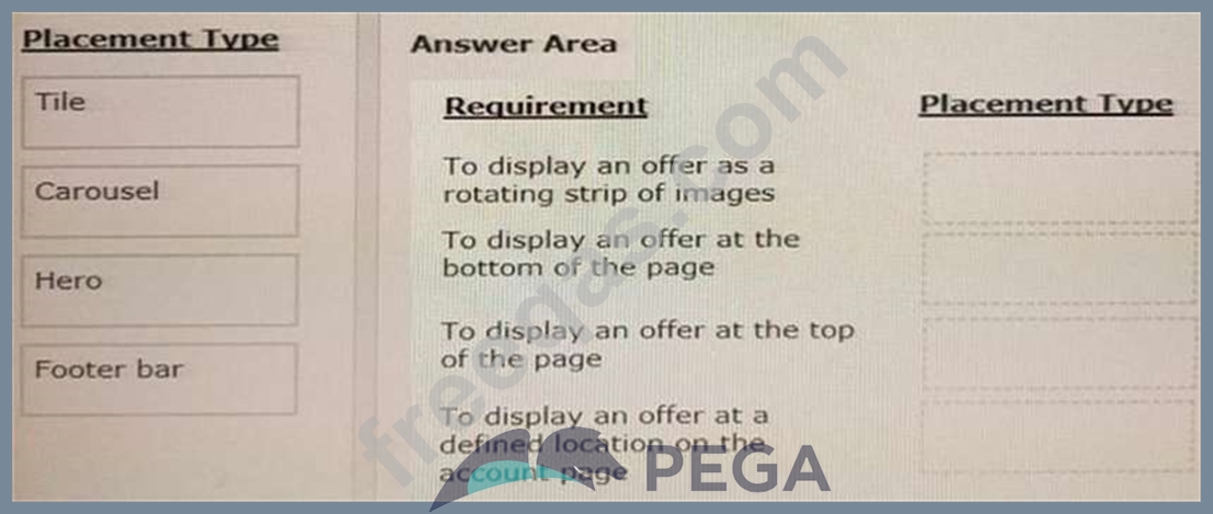 Select each placement type on the left and drag it to the correct requirement on the right.