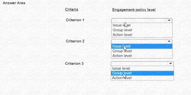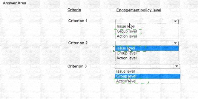 How do you configure the engagement policies to implement this requirement? Choose the engagement policy level that is best-suited for each criterion.
