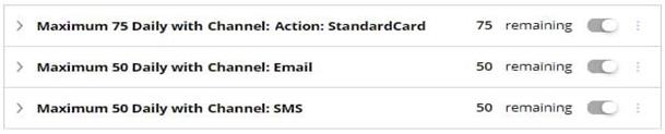 An outbound run identifies 100 Standard Card offers, 50 on email and 50 on the SMS channel. If the above volume constraint is applied, how many actions will be delivered by the outbound run?