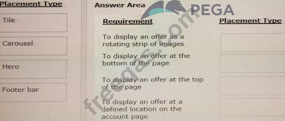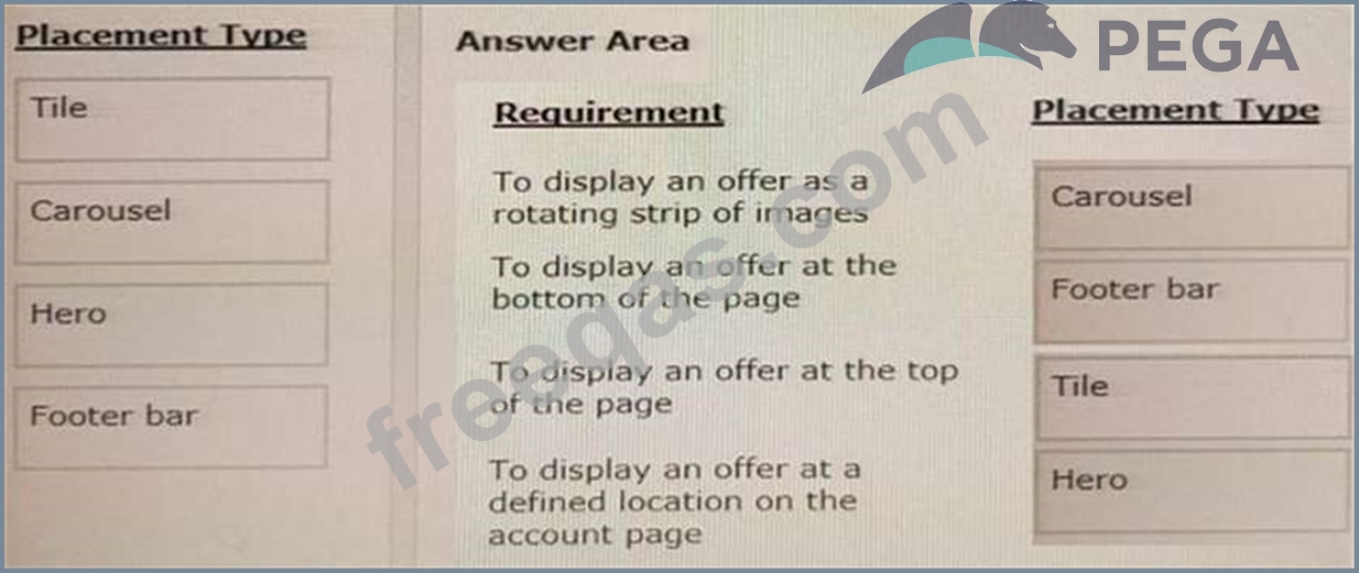 Select each placement type on the left and drag it to the correct requirement on the right.