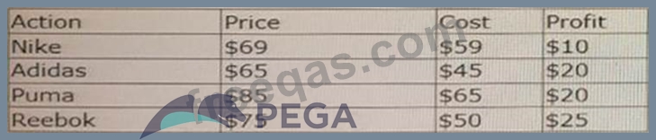 The following decision strategy outputs the most profitable shoe a retailer can sell. The profit is the selling Price of the shoe, minus the Cost to acquire the shoe.