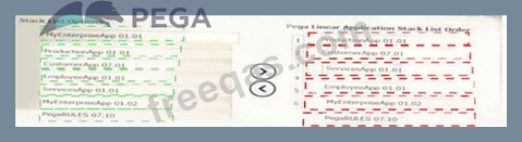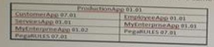 Specifically , the productionapp application is built on applications customerapp and employeeapp. Each of these applications has additional built-on applications, including the duplicated MYEnterpriseApp application, which has two different versions in use. All applications are built on the same version of PegaRUUS.