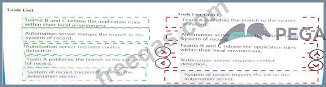 To ensure all development teams are working with the latest version of shared rule base, select and move all of the following tasks to the tasks List Order column and place them in the correct order.