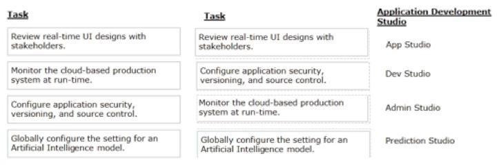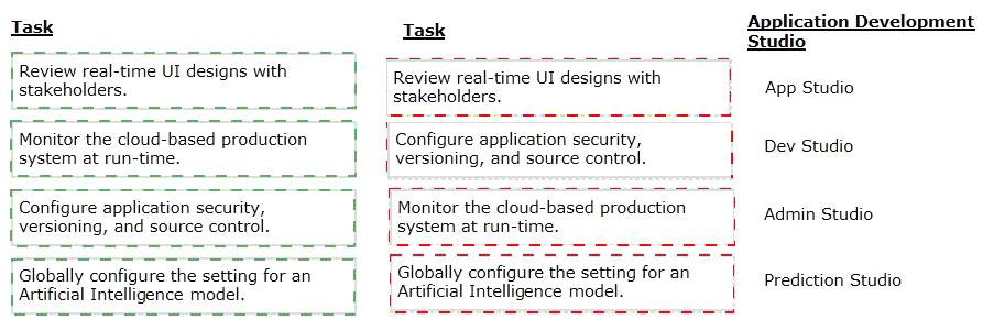 Select each task on the left and drag it to the corresponding Application Development Studio on the right, where the task can be completed.