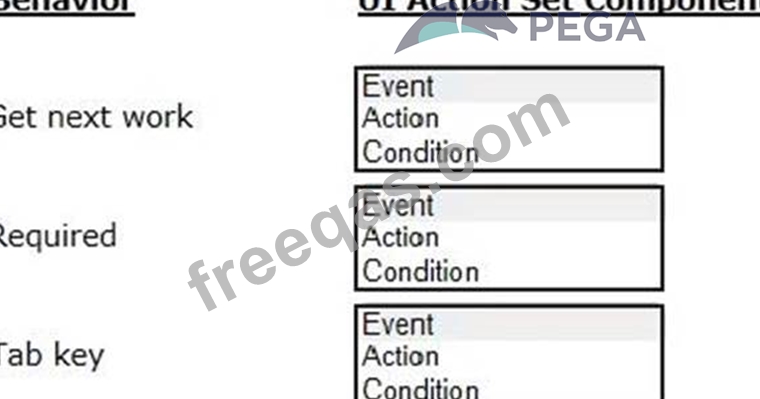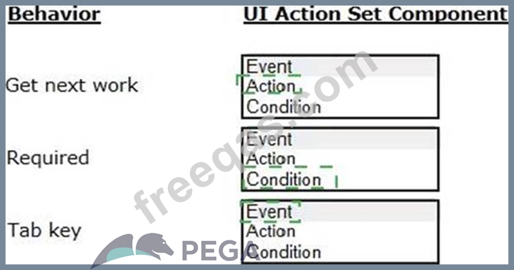 Select the corresponding user interface (UI) action set component for each behavior in the Answer area.