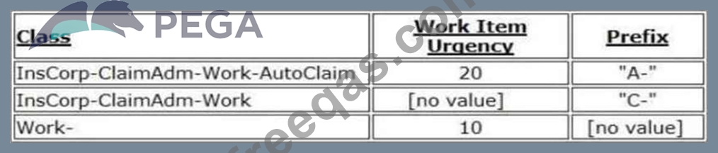 An application contains two case types, AutoClaim and PropertyClaim. The inheritance path for the application contains three copies of the pyDefault data transform that set property values for two properties, Work Item Urgency and Prefix.