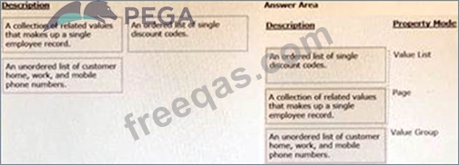 Select each description on the left and drag it to the correct property mode on the right.