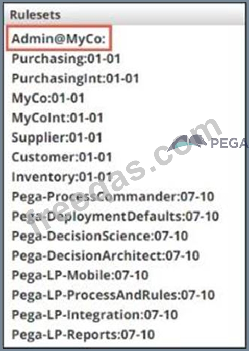 What is stored in the Admin@MyCo ruleset?