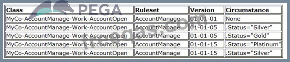 You update the application and increment the AccountManage ruleset version to 01-02-01. As part of this update, the circumstance .Status="Silver" is no longer needed by the application.