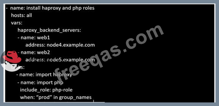 Create a file called requirements.yml in /home/sandy/ansible/roles a file called role.yml in /home/sandy/ansible/. The haproxy-role should be used on the proxy host. And when you curl http://node3.example.com it should display "Welcome to node4.example.com" and when you curl again "Welcome to node5.example.com" The php-role should be used on the prod host.