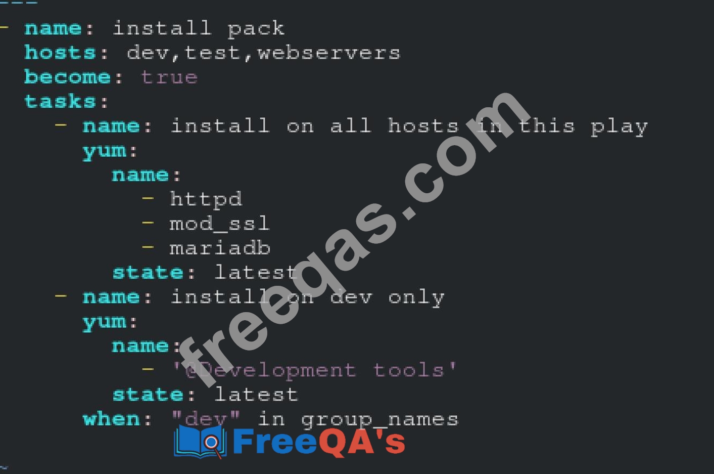 Create a file calledpackages.yml in/home/sandy/ansibleto install some packages for the following hosts. On dev, prod and webservers install packages httpd, mod_ssl, and mariadb. On dev only install the development tools package. Also, on dev host update all the packages tothe latest.