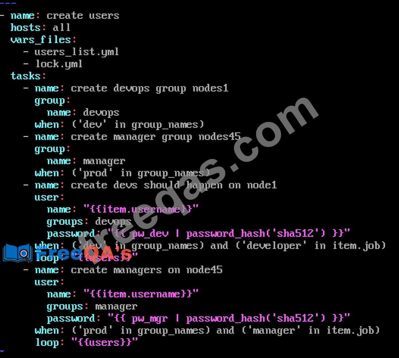 /home/sandy/ansible.The passwords for these users should be set using thelock.ymlfile from TASK7. When running the playbook, the lock.yml file should be unlocked withsecret.txtfile from TASK 7.