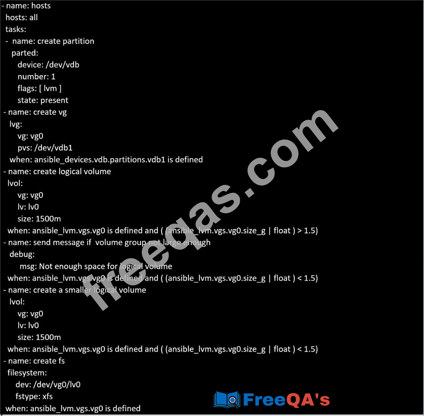 In /home/sandy/ansible/create a playbook called the play create a logical volume calledIv0and make it of size 1500MiB on volume group If there is not enough space in the volume groupprinta message