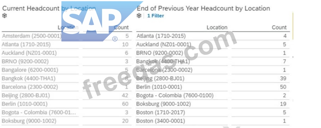 How would you configure a filter on the table End of Previous Year Headcount by Location to display data accurately?