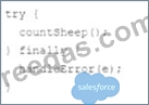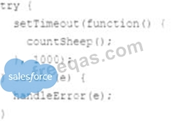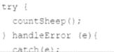 A developer wants to use a try...catch statement to catch any error that countSheep () may throw and pass it to a handleError () function.