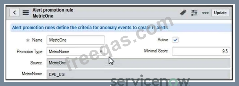 Which the following alert promotion rule defined in your ServiceNow instance, which of the anomalies below would be automatically promoted into IT alerts on the Alert Console?