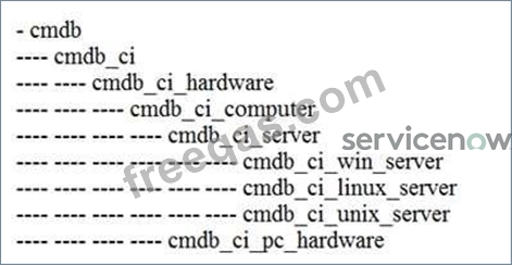 Given the class structure shown below, which types of Cls will be included in a report run against the cmdb_ci_computer table?