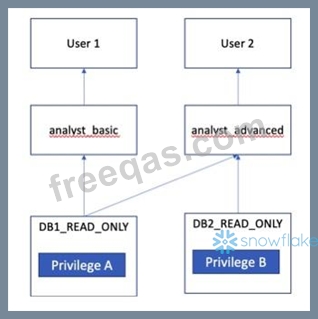 Suppose you have two databases D1 and D2. Theses databases contain data required by business analysts in your organization. Based on their functional responsibilities, entry level analysts should have read only access to D1, but access to D2 should be given to advanced analysts only.