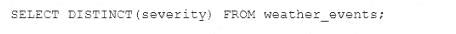 Assuming the weather_events table has not changed, which query would benefit from cached results?