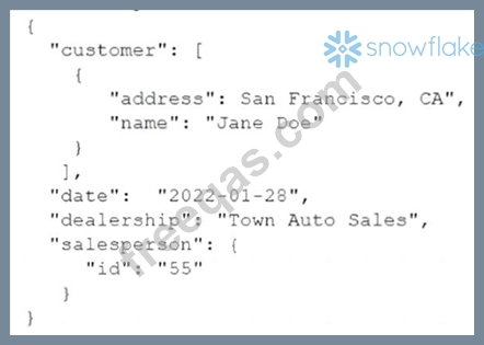 The following JSON is stored in a VARIANT column called src of the CAR_SALES table: