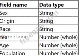 You need to shape the data in USPopulation Estimates by using TableauDesktop. The data must be formatted asshown in the following table.