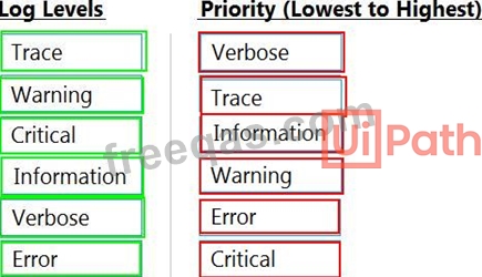 From the lowest priority to the highest priority, what is the correct priority sequence of the Log Levels for UiPath Robots?