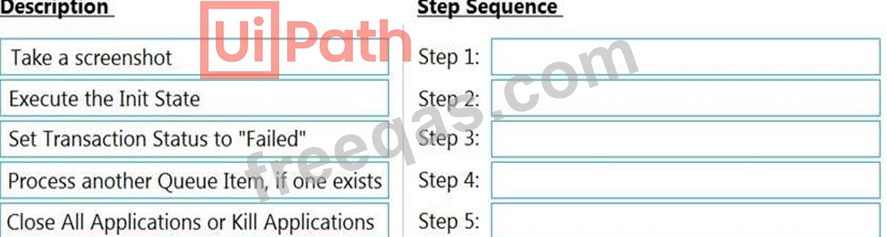 NOTE: Drag the Description found on the "Left" and drop on the correct Step Sequence found on the "Right".