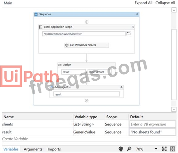 A developer created a UiPath Process to find out, how many worksheets an Excel file stores. What will be the result of the processing if the indicated workbook does not exist?