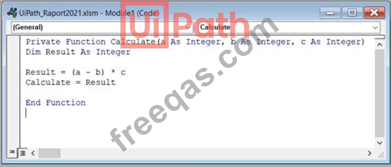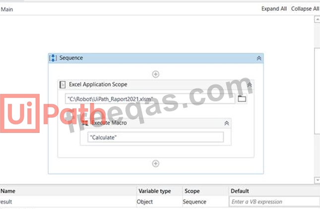 A developer wants to execute a macro stored in the UiPath_Raport2021.xlsm file. What will be the value of the result variable once the following sequence is executed?