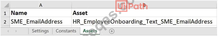 A developer created a project in the Robotic Enterprise (RE) Framework. The Config.xlsx has the Asset entry shown in the exhibit: