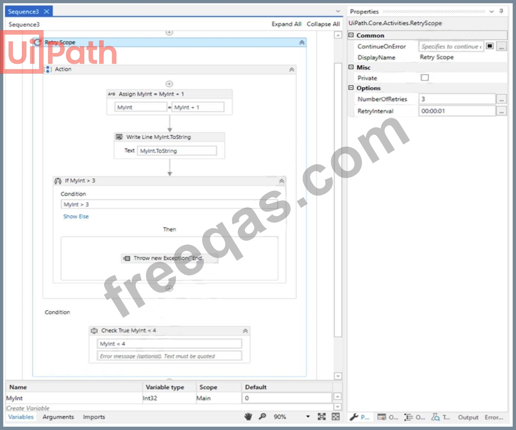 A developer created a sequence with a Retry Scope shown in the following exhibit: